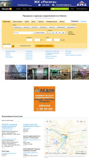 81%likado.ru – сайт актуальных и достоверных объявлений по недвижимости от агентств, собственников, инвесторов и застройщиков. продать или купить квартиру, найти землю под строительство, подобрать помещение для бизнеса стало проще. воспользуйтесь предложениями likado.ru, чтобы сэкономить время и силы в поисках нужного варианта.