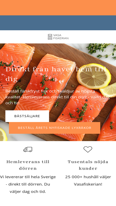 78%Hos Vasafiskerian kan du köpa fisk, skaldjur och löjrom med fokus på kvalitet. Vi erbjuder fri hemleverans vid valfri dag och tid till större delen av Sverige. Välkommen till din fisk- och skaldjursbutik online!