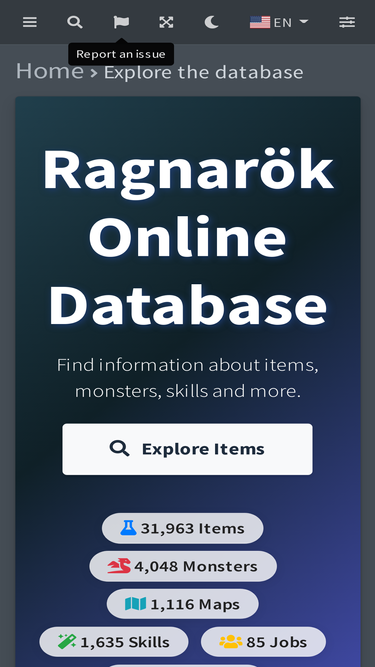 78%latest ragnarok pre-re and renewal databases. iro / kro item database, monster database, skill database, guides, maps, instances, npcs and creation database. read and write reviews on ro private servers. play with our skill simulator. download bgm remixes and ro tools.