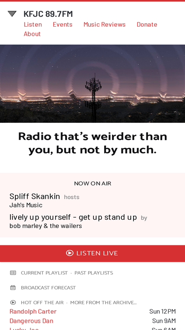 kfjc 89.7fm is a radio station in los altos hills, california. live volunteer djs provide edgy listening experiences in a freeform experimental format.