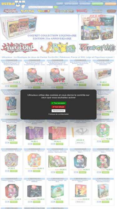 83%vente de jeux de société et cartes à collectionner pokémon, yu-gi-oh, dragonball, force of will