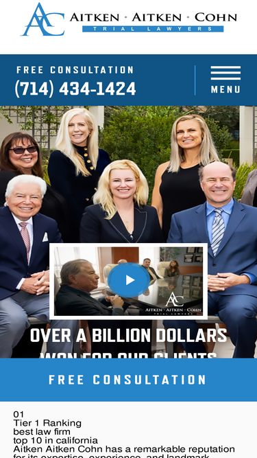 100%Our Pasadena personal injury attorneys at Aitken * Aitken * Cohn are highly regarded in Southern California. Contact us today at (866) 434-1424 to find out why.
