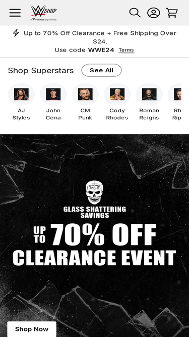 88%The WWE Shop is your official source for WWE Gear including Title Belts, Apparel and WWE Collectibles. Browse authentic clothing, toys and more for your favorite WWE superstars.