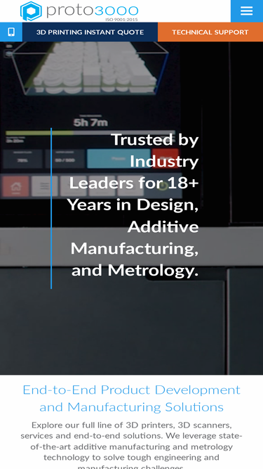 Proto3000 in Canada and the United States offers manufacturing solutions such as 3D printing services, additive manufacturing, 3D printers, 3D scanners, and post-processing.