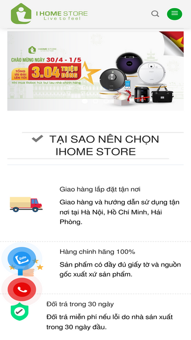 94%CAM KẾT SẢN PHẨM CHÍNH HÃNG TẠI MỸ Giao hàng trong 4h nội thành Hà Nội và TP. Hồ Chí Minh Bảo hành 24 tháng, kích hoạt bảo hành điện tử chính hãng tại Mỹ, luôn hỗ trợ tốt nhất cho khách hàng sau thời gian bảo hành. Trả góp với lãi suất 0% Luôn có phụ kiện thay thế chính hãng khi bạn cần dành cho khách hàng của iRobot® Việt Nam Hotline: 0901 33 88 99