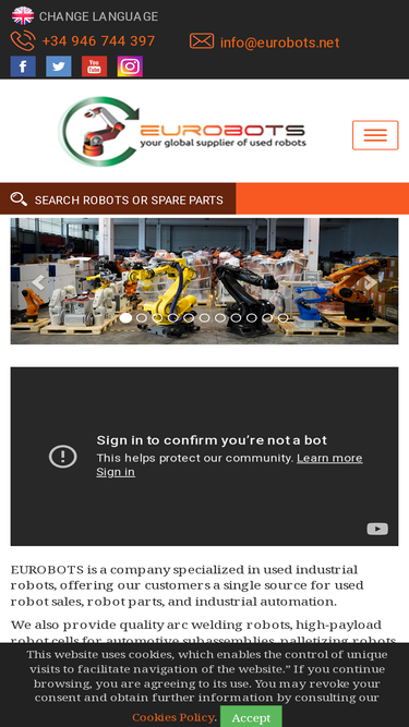 89%At Eurobots Bilbao we specialise in used industrial robots, offering our customers a single source for robot sales, robot parts, and industrial automation. We also provide quality arc welding robots, high-payload robot cells for automotive subassemblies, palletizing robots and a great range of peripherals and tools for the robots.