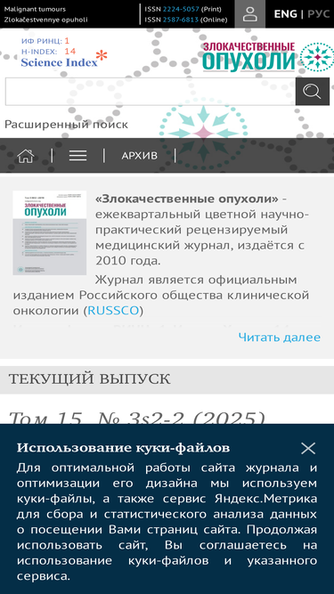 86%научно-практический медицинский рецензируемый журнал "злокачественные опухоли"