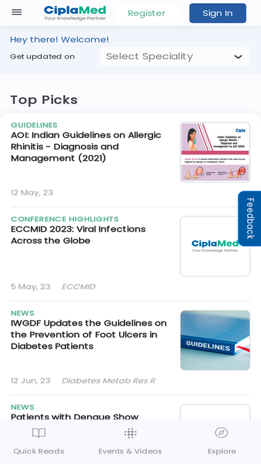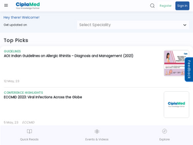 86%Ciplamed is a uniquely designed, comprehensive online medical portal for healthcare professionals. Ciplamed provides a range of evidence-based and clinically relevant practice resources across 18 specialties.