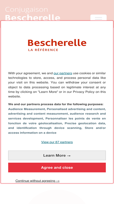 80%la conjugaison de plus de 9 000 verbes français à tous les modes et tous les temps, sous forme de tableaux de conjugaison simples et efficaces.