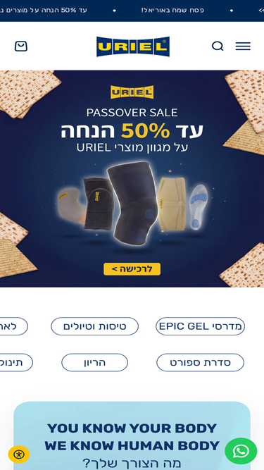 66%חברת URIEL מפתחת ומשווקת מעל 50 שנה מוצרי תמיכה ואורתופדיה מתקדמים למטרות רבות - הקלה על כאב, סיוע במצבים בריאותיים ועוד. היכנסו וקנו אונליין