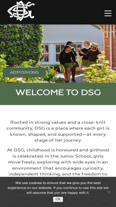 79%Home About DSG SNAP SHOT MESSAGE FROM THE HEAD LEADERSHIP TEAM POLICIES TRANSFORMATION, DIVERSITY & INCLUSION EMPLOYMENT A Family of Schools LOGIN TO MY DSG FOUNDATION DSG CAMPUS DEVELOPMENT THE COAT & BASHER EN AVANT CENTRE BURSARIES & SCHOLARSHIPS The Future Leaders Fund EASTERN CAPE BURSARY FUND GUILD BURSARY FUND DONATING TO DSG MAKE A DONATION 150 CLUB My Difference Card FAITH THE DSG PRAYER WALK COMMUNITY PARENTS PARENT PORTAL FEE PAYMENT TERM DATES USEFUL INFO ALUMNI Reunions ARCHIVES UPDATE YOUR DETAILS GUILD BURSARY HISTORY OF GUILD GUILD STRUCTURE EVENTS PHOTO GALLERY 150th celebrations SENIOR FAITH LIVING ACADEMIC CULTURE SPORT OUTDOOR EDUCATION COMMUNITY ENGAGEMENT DSG SENIOR STAFF JUNIOR FAITH LIVING SPORT MUSIC OUTDOOR EDUCATION LEARNING COMMUNITY ENGAGEMENT DSG JUNIOR STAFF MERCH SHOP NEWS & EVENTS LATEST NEWS NEWSLETTERS IN THE MEDIA KDAY GUIDE BALLOON WEEK GUIDE A Level Results 2025 MATRIC RESULTS 2025 CALENDAR & EVENTS TERM DATES GOOGLE CALENDAR SPORTS CALENDAR WHAT’S ON East London Information Evening ADMISSIONS CONTACT Home About DSG SNAP SHOT MESSAGE FROM THE HEAD LEADERSHIP TEAM POLICIES TRANSFORMATION, DIVERSITY & INCLUSION EMPLOYMENT A Family of Schools LOGIN TO MY DSG FOUNDATION DSG CAMPUS DEVELOPMENT THE COAT & BASHER EN AVANT CENTRE BURSARIES & SCHOLARSHIPS The Future Leaders Fund EASTERN CAPE BURSARY FUND GUILD BURSARY FUND DONATING TO DSG MAKE A DONATION 150 CLUB My Difference Card FAITH THE DSG PRAYER WALK COMMUNITY PARENTS PARENT PORTAL FEE PAYMENT TERM DATES USEFUL INFO ALUMNI Reunions ARCHIVES UPDATE YOUR DETAILS GUILD BURSARY HISTORY OF GUILD GUILD STRUCTURE EVENTS PHOTO GALLERY 150th celebrations SENIOR FAITH LIVING ACADEMIC CULTURE SPORT OUTDOOR EDUCATION COMMUNITY ENGAGEMENT DSG SENIOR STAFF JUNIOR FAITH LIVING SPORT MUSIC OUTDOOR EDUCATION LEARNING COMMUNITY ENGAGEMENT DSG JUNIOR STAFF MERCH SHOP NEWS & EVENTS LATEST NEWS NEWSLETTERS IN THE MEDIA KDAY GUIDE BALLOON WEEK GUIDE A Level Results 2025 MATRIC RESULTS 2025 CALENDAR & E