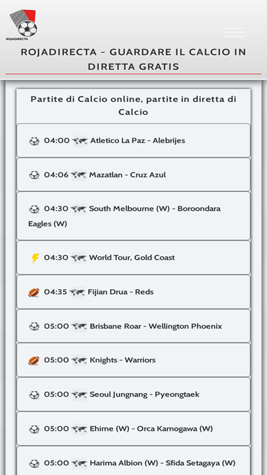 97%Rojadirectaonline guarda calcio in diretta gratis, dal vivo di Calcio, eventi sportivi in diretta, giochi di calcio online, streaming Calcio.