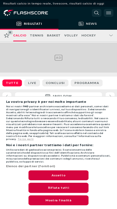 Segui i risultati calcio in tempo reale sul tuo telefonino! Controlla il corrente calcio