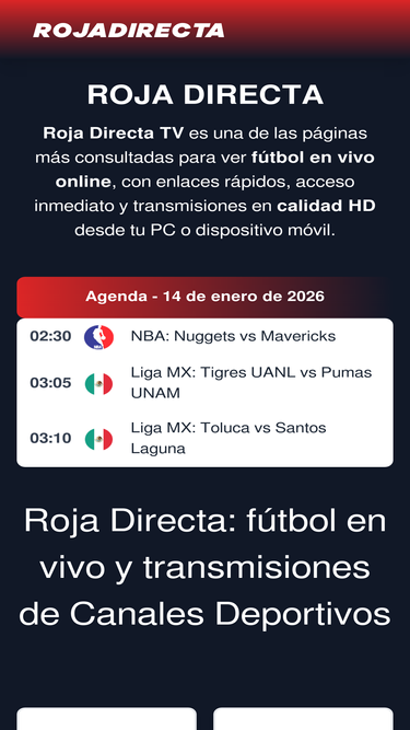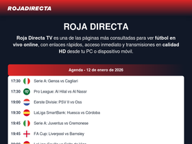 96%Roja Directa TV ofrece fútbol en vivo online gratis en HD. Consulta los partidos de hoy de ligas y copas de Perú, España, México, Argentina, Colombia, Chile, Ecuador y EE.UU.
