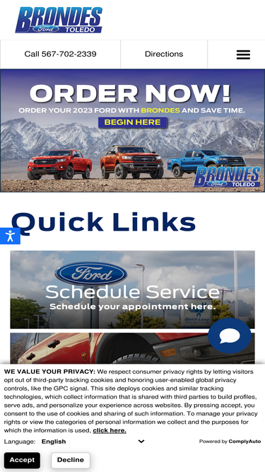 99%Brondes Ford, Inc. - Your Toledo Ohio Ford dealer for new Cars, Crossovers, SUVs, Trucks, Commercial Trucks and used vehicles sales and service. Located at 5545 Secor Road, Toledo, Ohio 43623.