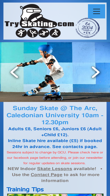 100%Tryskating provide skating lessons in Scotland plus news on skate events and skating sports, including recreational, slalom, street and speed skating. Skate rental and free skate sessions in Glasgow, plus a list of outdoor and indoor skating locations. ICP and BRSF qualified skate instructors.