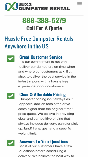 89%call 866-670-2709 toll-free for the best deals on dumpster rentals and roll-off containers in. quick, reliable, and affordable services guaranteed.