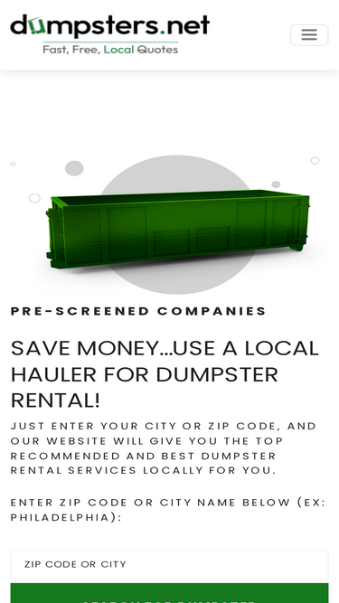 90%Quickly compare local dumpster rental services and securely book a dumpster in minutes. See pricing, sizes, availability, and reviews for the top dumpster companies serving your hometown.