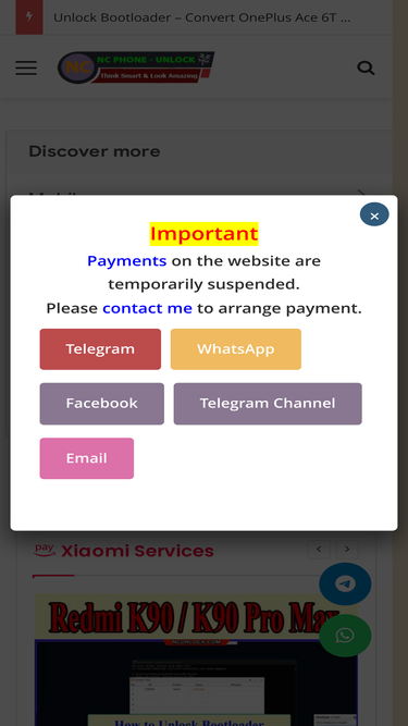 82%Instructions for payment on the NCUNLOCK website (NC PHONE).