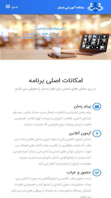 65%نرم افزار آموزش آنلاین در پلت فرم های اندروید، آیفون و وبسایت قابل ارائه به آموزشگاه های مختلف کشور می باشد. شامل تمامی امکانات آموزش مجازی و کامل ترین آزمون آنلاین و بانک سوال