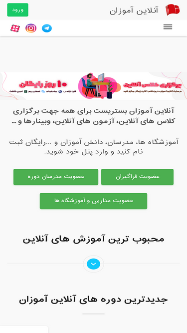 72%در آنلاین آموزان می توانید به راحتی دوره های آنلاین برگزار کنید. پنل کاربری اختصاصی برای دانش آموزان و مدرسان. امکان برگزاری دوره و آزمون آنلاین و امکانات بی نظیر دیگر را فقط در آنلاین آموزان تجربه کنید.
