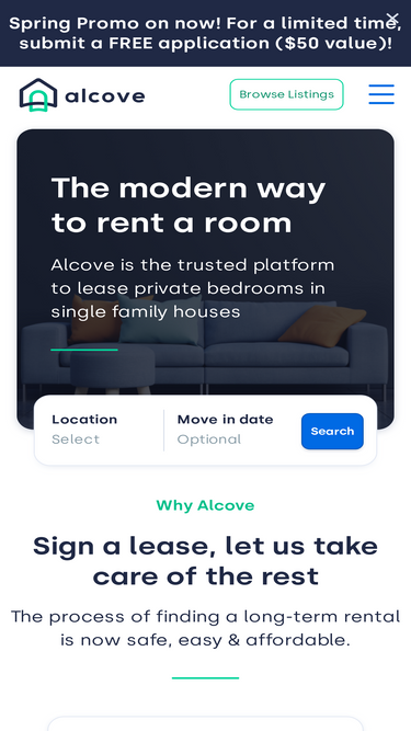 74%alcove enables shared living in any rental property. we provide renters with everything they need to find move-in ready homes and roommates, and we help homeowners with a suite of tools to increase rental income and manage tenant logistics.