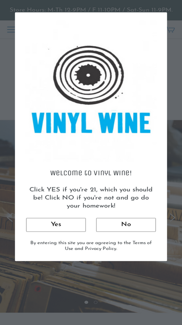 94%Hours of Operation: Monday-Thursday: 1:00 PM - 9:00 PM Friday and Saturday: 12:00 PM - 10:00 PM Sunday: 12:00 PM - 9:00 PM You can place online orders 24/7! Delivery Options: Need wine NOW? The fastest local delivery is through Doordash and Uber Eats. We also use Relay and Airpals If you are in the NY area and do not n