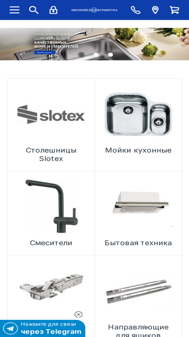 80%Каталог недорогой итальянской мебельной фурнитуры, аксессуаров и принадлежностей для кухни. Столешницы, мойки, петли, направляющие, сетчатые емкости и емкости для столовых приборов, сушилки для посуды и многое другой. Огромный каталог.