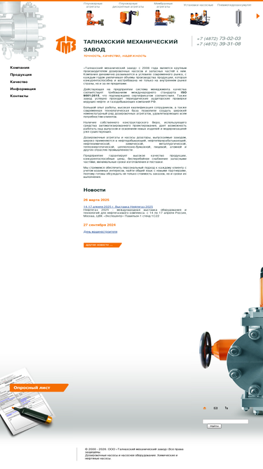 82%зао «талнахский механический завод» - дозировочные насосы нд, ндг, ндр. производство деталей и комплектующих трубопроводов химической, нефтегазовой, пищевой и других отраслей промышленности. насосы дозаторы, нефтяные и химические насосы.