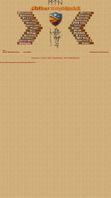 86%mittelalter und larp ausrüstung, blankwaffen, schwerter, schaukampfschwerter, krämerey, langbogen, larpbogen, historische musikinstrumente, gewandungen und vieles mehr. melbars tröpfelhandel, historischer händler für den abenteurer, kämpen, hohen herrn und ihre holde weiblichkeit. handel und auftragsarbeiten. alles was das kämpenherz begehrt. vom runenamulett bis zum komplettem stechzeug.