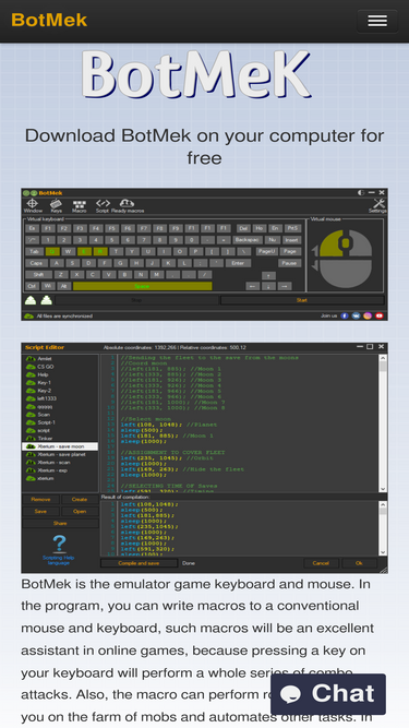 92%The program BotMek for creating macros on a normal mouse and keyboard, supports macros from A4tech Bloody X7 gaming mice created in the Oscar Editor and all the features of the auto clicker. Here you can download free macros for most popular games that will reduce the impact of weapons in shooters and automate actions in other games.