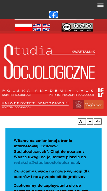 97%studia socjologiczne są kwartalnikiem polskiego środowiska socjologicznego. w wersji drukowanej ukazują się nieprzerwanie od 1961 roku. obecnie dostępne są również w wersji elektronicznej w otwartym dostępie (open access).