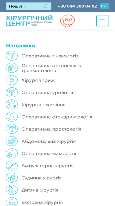 75%хірургія viva – 067 530 06 57 | 044 300 04 02 • оперативна гінекологія • амбулаторна хірургія • оперативна урологія • абдомінальна хірургія • оперативна проктологія • судинна хірургія • оперативна ендокринологія • хірургія гриж • оперативна ортопедія та травматологія • пластична хірургія • оперативна отоларингологія • хірургія ожиріння • дитяча хірургія • нейрохірургія • реабілітація • стаціонар