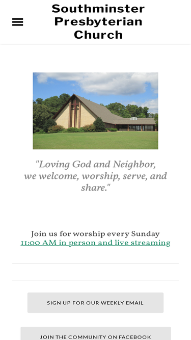 75%Southminster Presbyterian Church 7500 Hull St. Rd. N. Chesterfield, VA 23235 office@southpreschurch.org 804-276-1749
