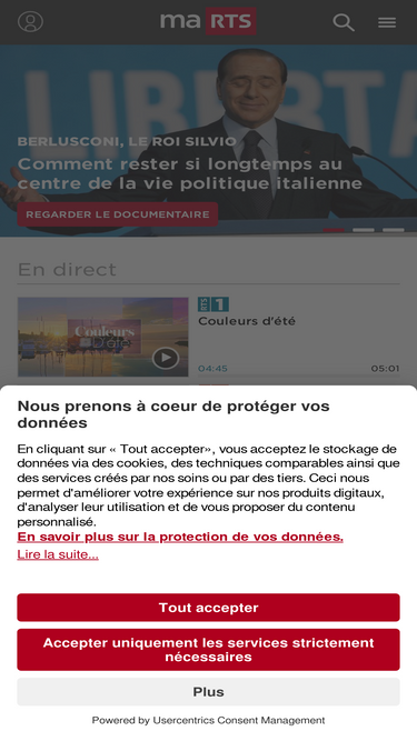 100%Le site de la Radio Télévision Suisse francophone RTS 1, RTS 2, RTS Première, RTS Espace 2, RTS Couleur 3 et RTS Option Musique | Accédez à toutes vos émissions radio et TV, informez-vous grâce à nos portails d'information et de sport, participez à nos concours et consultez nos programmes TV et radio.