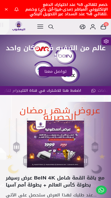 92%احصل على أحدث رسيفرات بين سبورت الأصلية مع تجديد اشتراكات بين سبورت لكل الباقات بأسعار مميزة وتفعيل فوري من خلال متجرنا MT STORE داخل السعودية