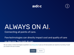 82%FAQ's - Are Aidoc solutions GDPR and HIPAA compliant? Who uses Aidoc? What makes Aidoc's tech unique? How does Aidoc integrate? And more.