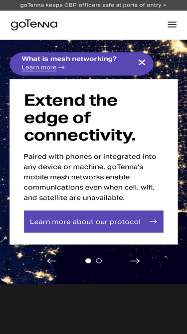 79%This ad hoc infrastructure support node covers two goTenna mesh networks persistently. Environmental ruggedization, external charging options to extend onboard power, and varied mounting support ensures sustained operational coverage without expensive and cumbersome installations. Made in USA.