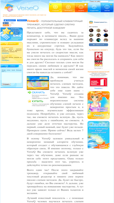 клавиатурный тренажер verseq - новый шаг в технологиях обучения слепому методу печати. уже сегодня, через час вы сможете печатать вслепую. проверьте сами! :)