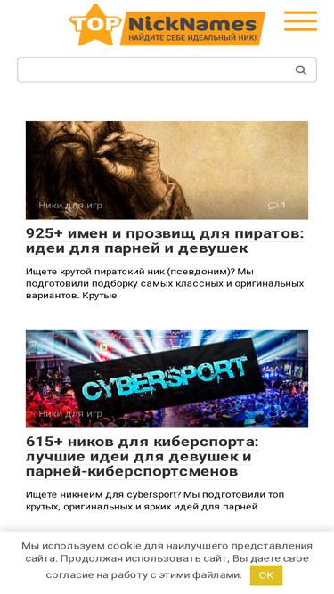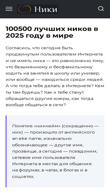 80%с помощью сайта «nick-names.ru» вы можете найти себе никнейм (проще говоря, ник). в нашей базе содержится уже несколько тысяч лучших ников на все случаи жизни.