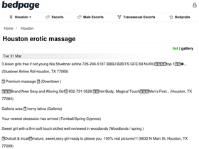 Houston body rubs, bedpage.com erotic massage, body rubs body rubs, and massage parlors with photos. post ads with pics bedpage.com