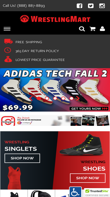 73%Manufacturer and retailer of quality wrestling and martial arts apparel and accessories since 1969.