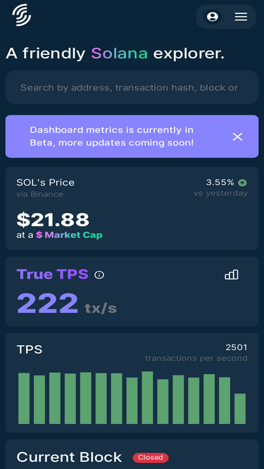 Unlock the power of exploring Solana with SolanaFM's Next-Generation Block Explorer. Gain real-time insights into transactions, network stats and track your favourite wallets. Effortlessly explore and scan through the Solana Blockchain with our user-friendly interface.