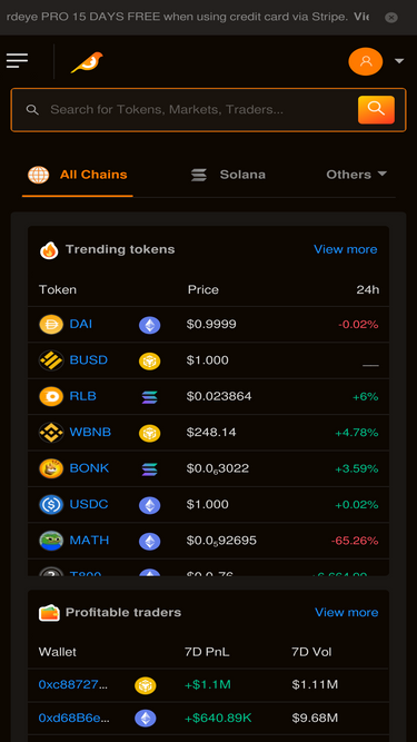 84%Never miss market moves with tracking crypto price, real-time charts, trading transactions, wallets across Solana, Sui, ETH and more. Birdeye data aggregated from 300+ exchanges.
