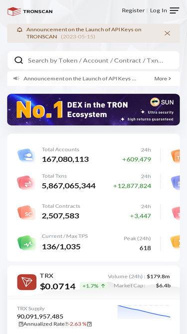 87%TRONSCAN is the first blockchain browser in the tron community. It supports multiple login methods and provides a complete browsing and search experience. Experience the tron-ecology in the TRONSCAN blockchain browser.TRONSCAN是首款社区型波场区块链浏览器,它支持多种登录方式,提供完善的浏览和查找体验。体验波场生态尽在TRONSCAN波场区块链浏览器。