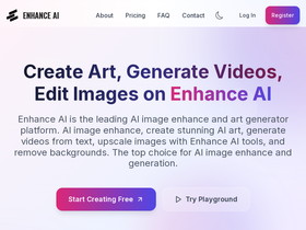95%Transform your ideas into stunning visuals with our cutting-edge AI. Create images, videos and so much more in few seconds with Enhance AI.