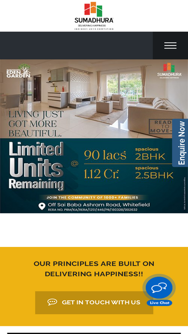 82%Sumadhura Group is one of the prominent residential and commercial real estate developers in Bangalore & Hyderabad with over three decades of experience.