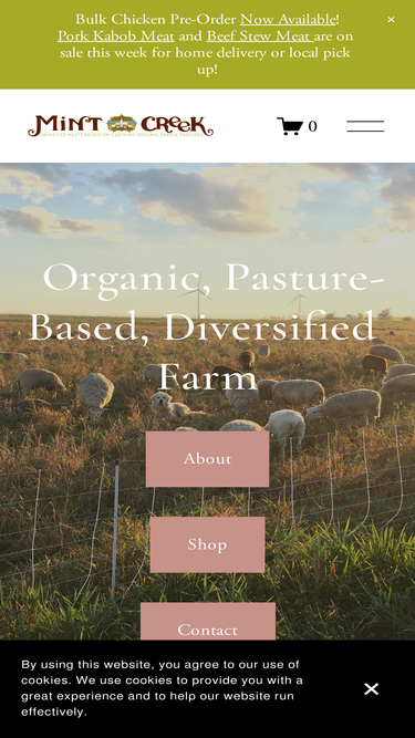 100%Mint Creek’s herd of heritage Black and Red Angus cattle graze our 220 acres of organic perennial pasture, where they are raised from birth. Our herd of cattle are 100% grass-fed and finished, and get vitamins and minerals from an organically approved mineral salt mix. No grain, no growth hormones,