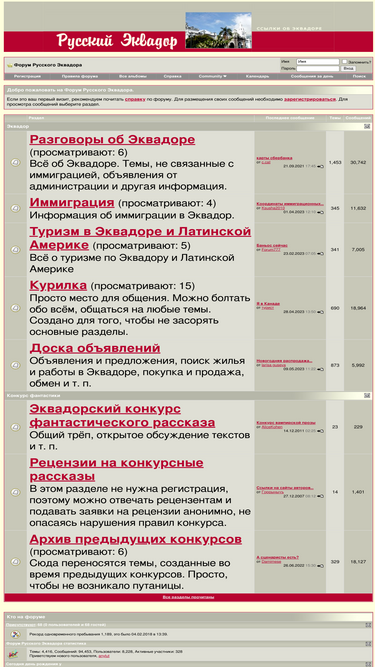 82%русский эквадор - открытый форум эквадорского русскоязычного сообщества. информация о жизни в эквадоре, эмиграции и туризме. для ознакомления - http://www.russianecuador.com/forum/
