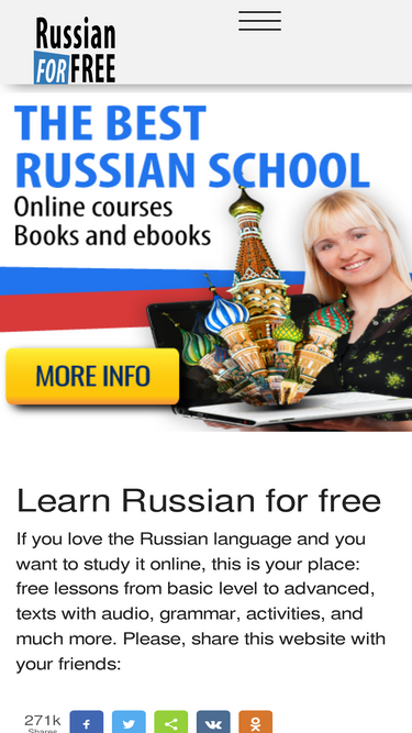 russian language courses, lessons, texts, audio and video. free resources from basic to advanced to learn russian as a foreign language.